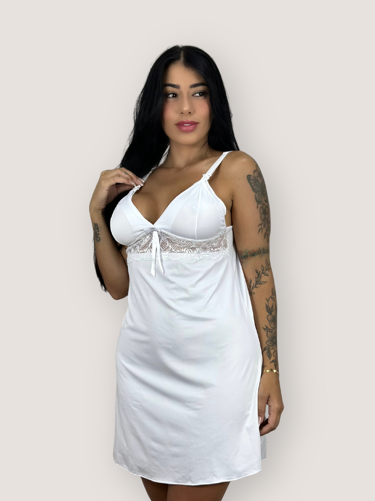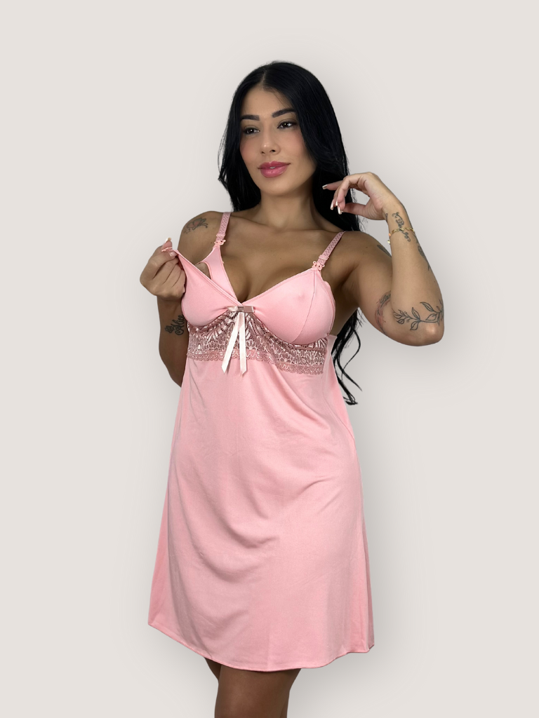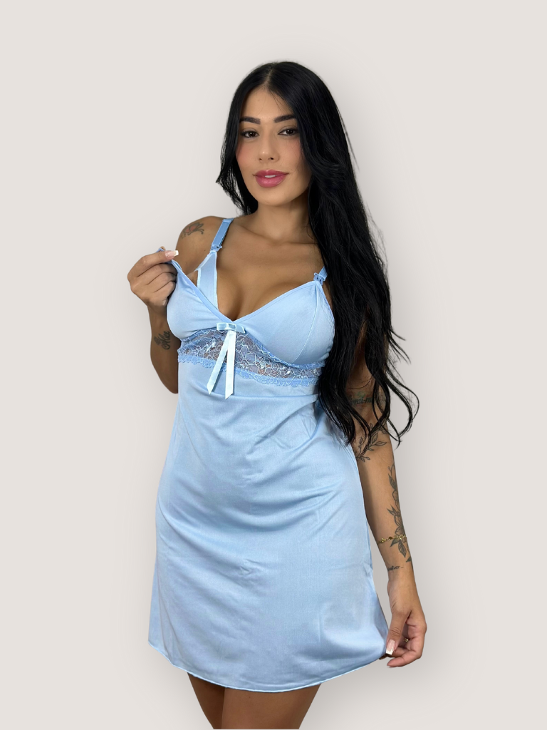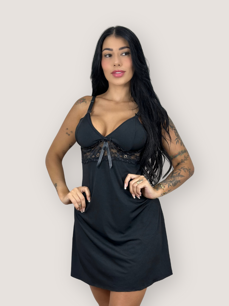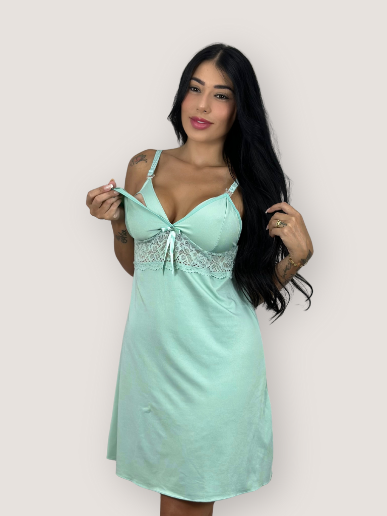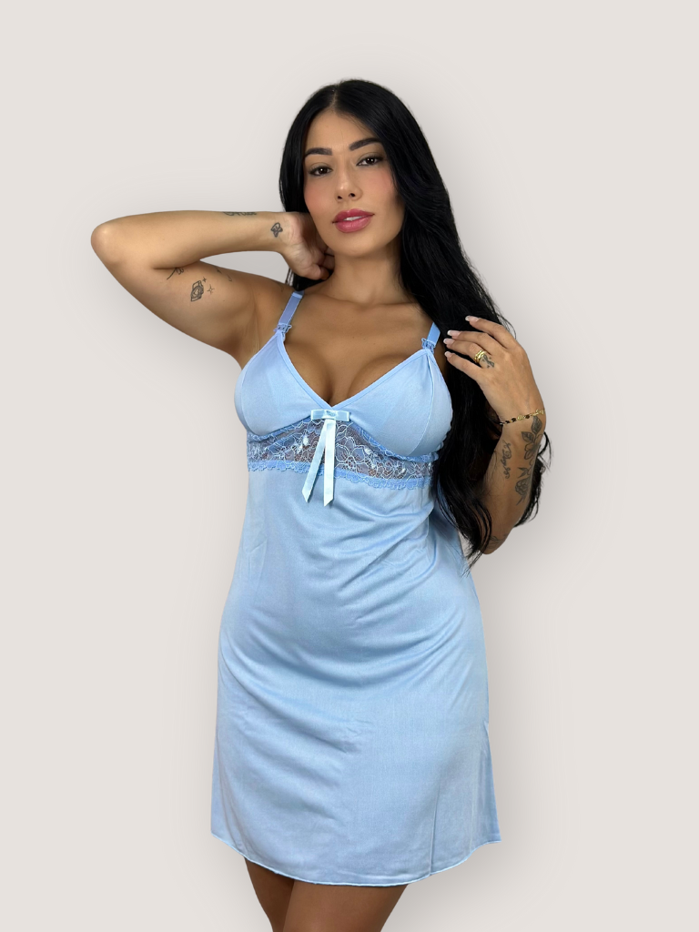 A Camisola Amamentação Bruna é produzida com tecido de alta qualidade e possui detalhes em renda. Alças com regulagem e o bojo possui um fecho com click para facilitar a amamentação.