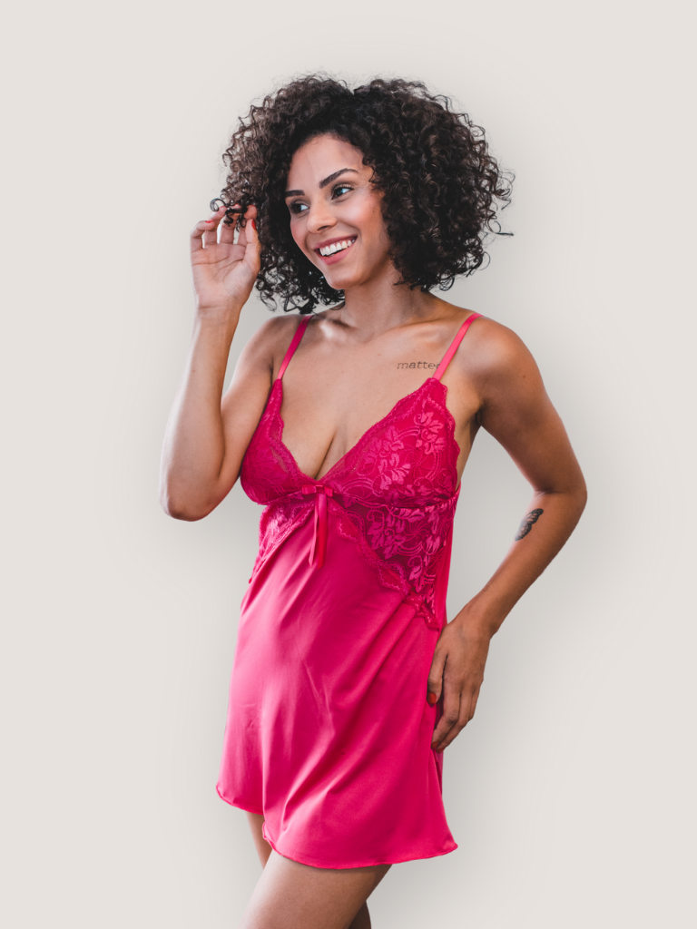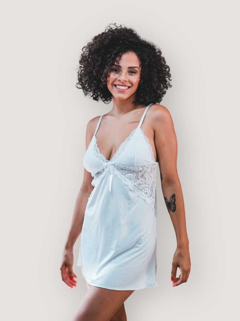 Também possui detalhe em renda no bojo. A camisola não possui bojo com arco ou espuma, foi pensado para moldar o seio, proporcionando um conforto natural e aconchegante.