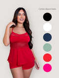O short doll não possui bojo com arco ou espuma, foi pensado para moldar o seio, proporcionando um conforto natural e aconchegante.