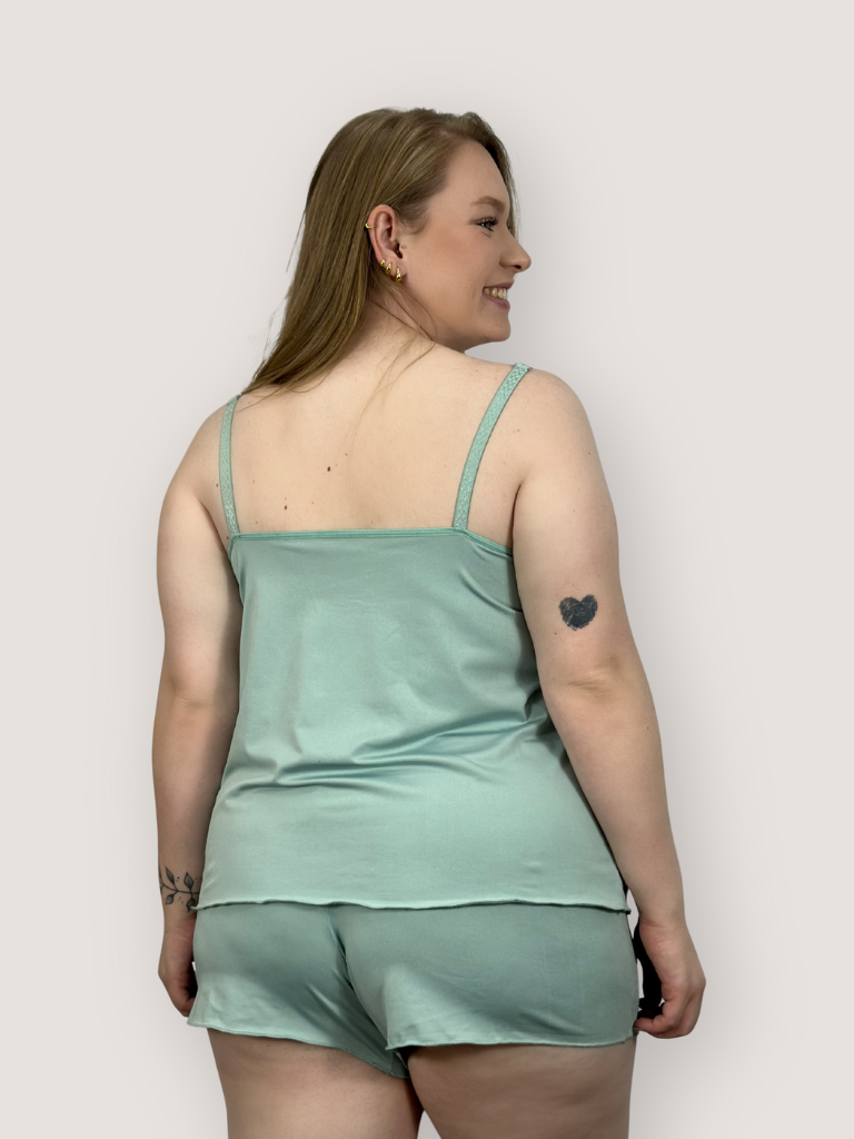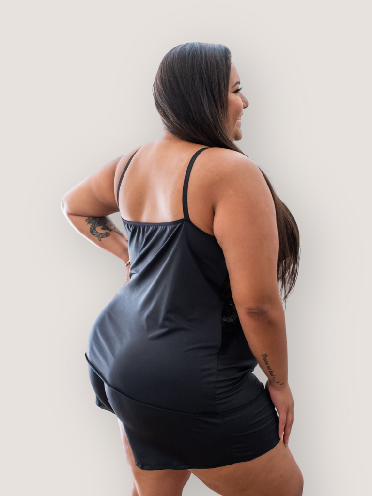 O short doll não possui bojo com arco ou espuma, foi pensado para moldar o seio, proporcionando um conforto natural e aconchegante.