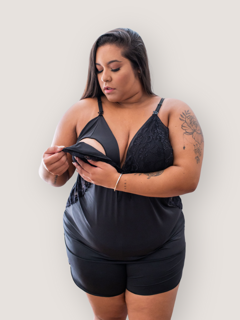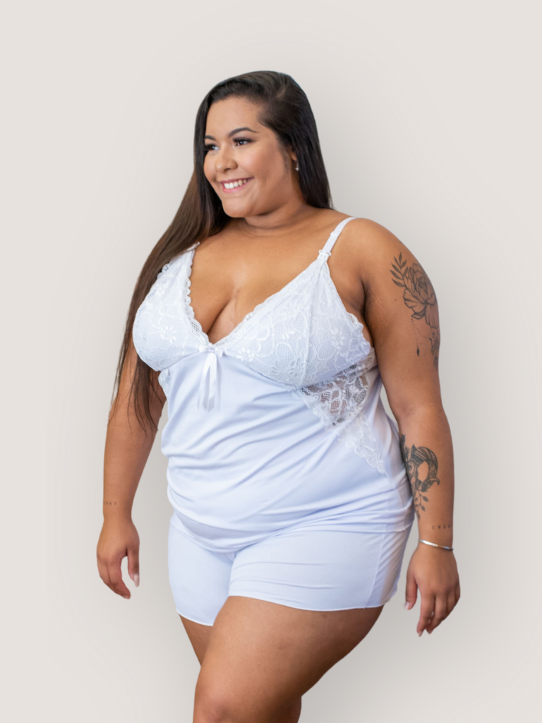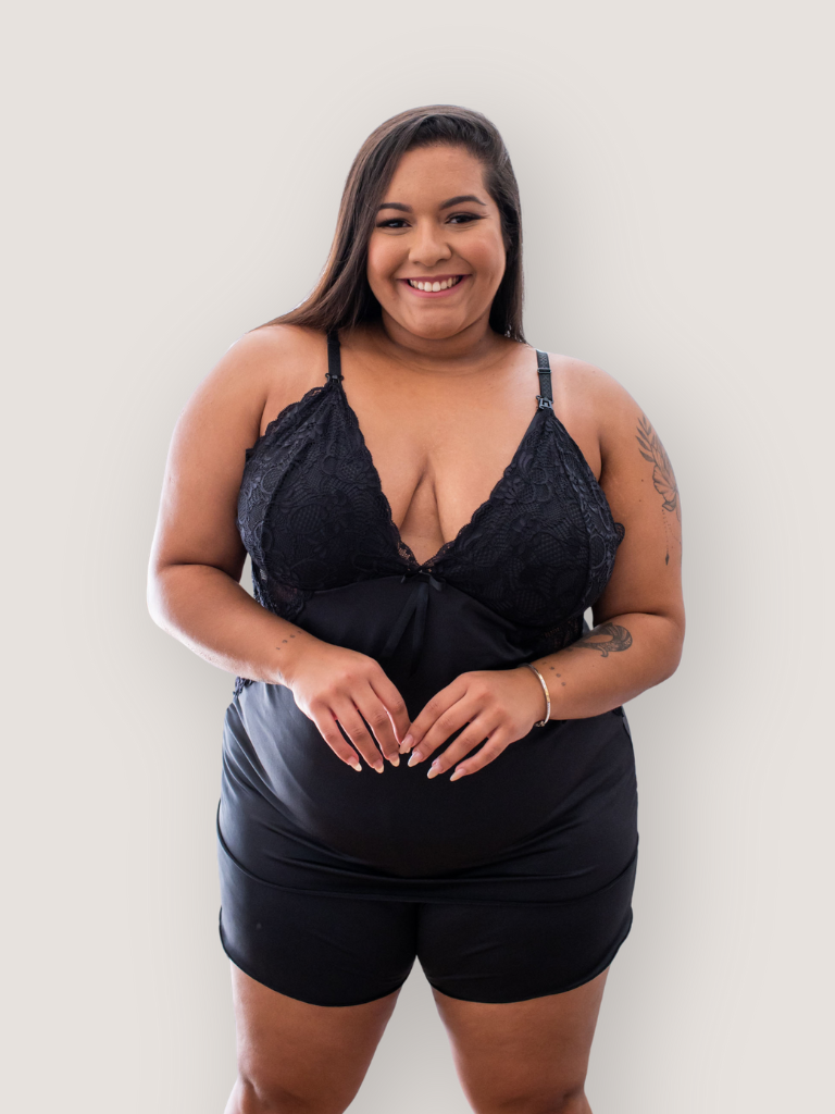O Short Doll Amamentação Plus Size Helena é produzido com tecido de alta qualidade e possui detalhes em renda. Possui alças com regulagem e o bojo é forrado. Ainda possui um fecho com click para facilitar a amamentação.